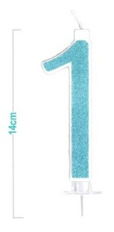 SZÁMGYERTYA "1" KÉK CSILLÁMPOROS 14CM