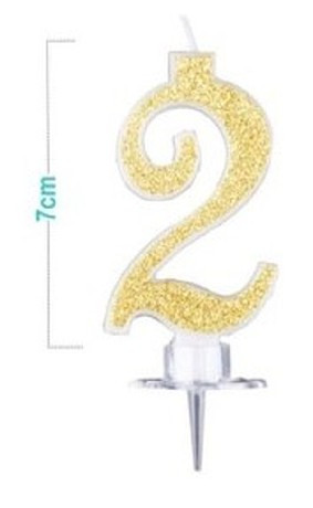 SZÁMGYERTYA "2" ARANYPOROS 9CM