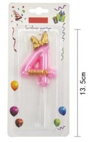 SZÁMGYERTYA "4" 13,5CM RÓZSASZÍN MASNIS