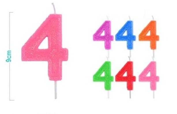 SZÁMGYERTYA "4" 9CM FLUORESZKÁLÓ 6F. SZÍN