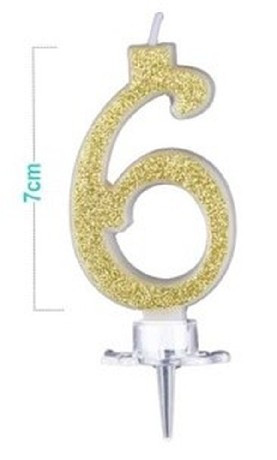 SZÁMGYERTYA "6" ARANYPOROS 9CM