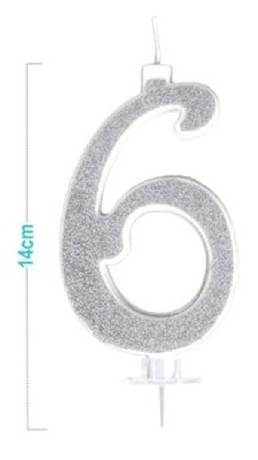 SZÁMGYERTYA "6" EZÜSTPOROS 14CM