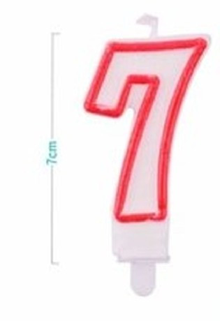 SZÁMGYERTYA "7" 9CM FEHÉR/PIROS SZÉLŰ