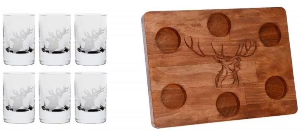 SZERVÍROZÓ SZETT 6DB FELESPOHÁR + 1 DB TÁLCA SZARVAS MINTÁS 30ML
