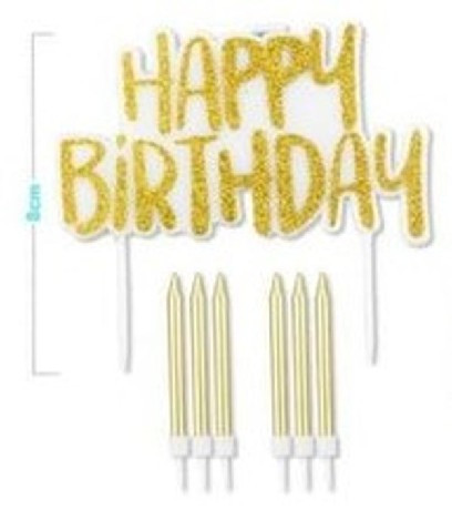 SZÜLINAPI GYERTYA 7DB 8CM  HAPPY BIRTHDAY" ARANY