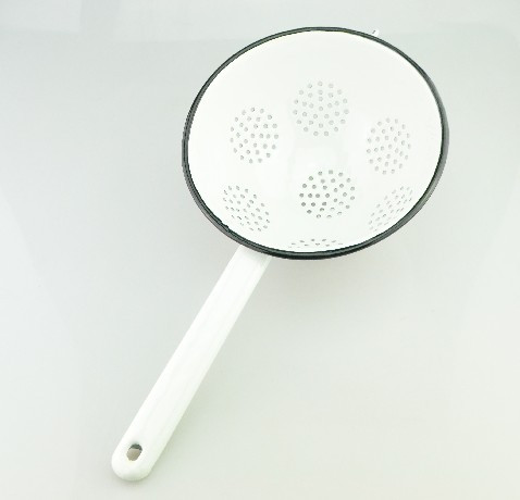SZŰRŐ FEHÉR ZOMÁNC NYELES 18 CM