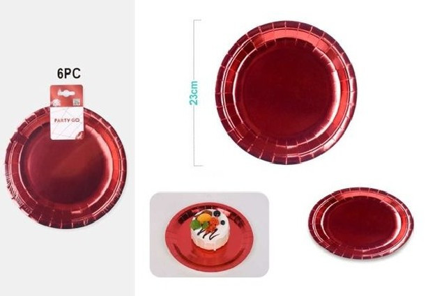 TÁNYÉR PAPÍR FÉMES VÖRÖS 23CM 6DB-OS