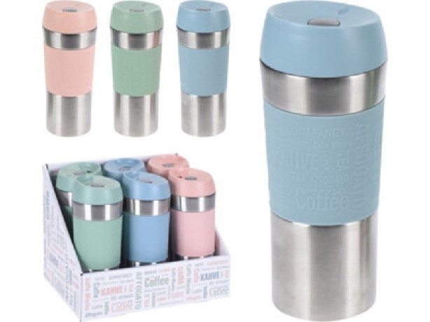 TERMOSZ RM. 350ML PP FEDŐVEL ÉS SZILIKON FOGÓVAL 3F. SZÍN (6DB/DISPLAY)