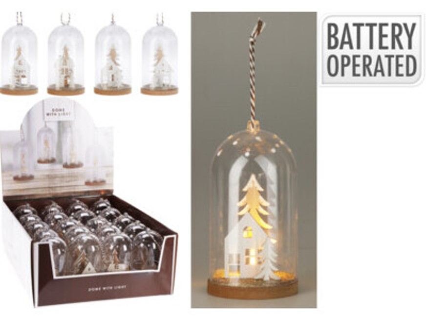 ÜVEGKUPOLA LED-ES AKASZTÓVAL,7X7X13CM, 70 GRAMM, 4 DIZÁJN, SZÍN: FEHÉR ÉS TERMÉS