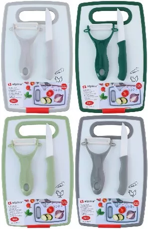 VÁGÓDESZKA+KÉS+HÁMOZÓ 25X16CM 4FÉLE ALPINA