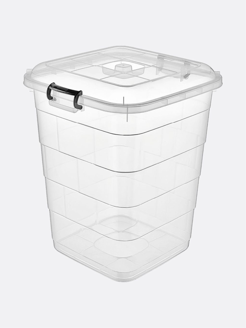 TÁROLÓDOBOZ NÉGYZET ALAKÚ 55L "TETRIS" ÁTLÁTSZÓ MŰA.