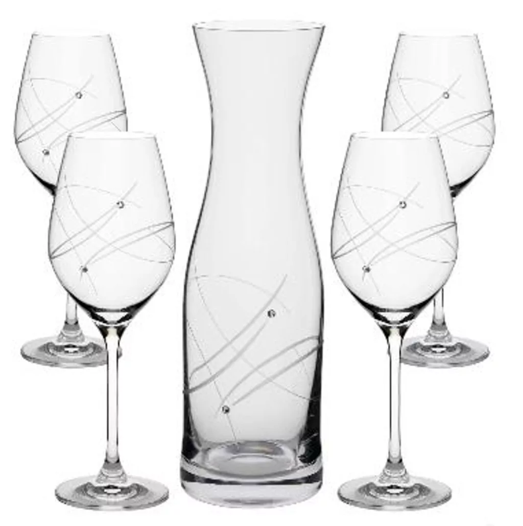 BOROSPOHÁR + KANCSÓ SZETT 5DB-OS, KRISTÁLYBERAKÁSSAL DÍSZÍTETT 1000ML / 360ML