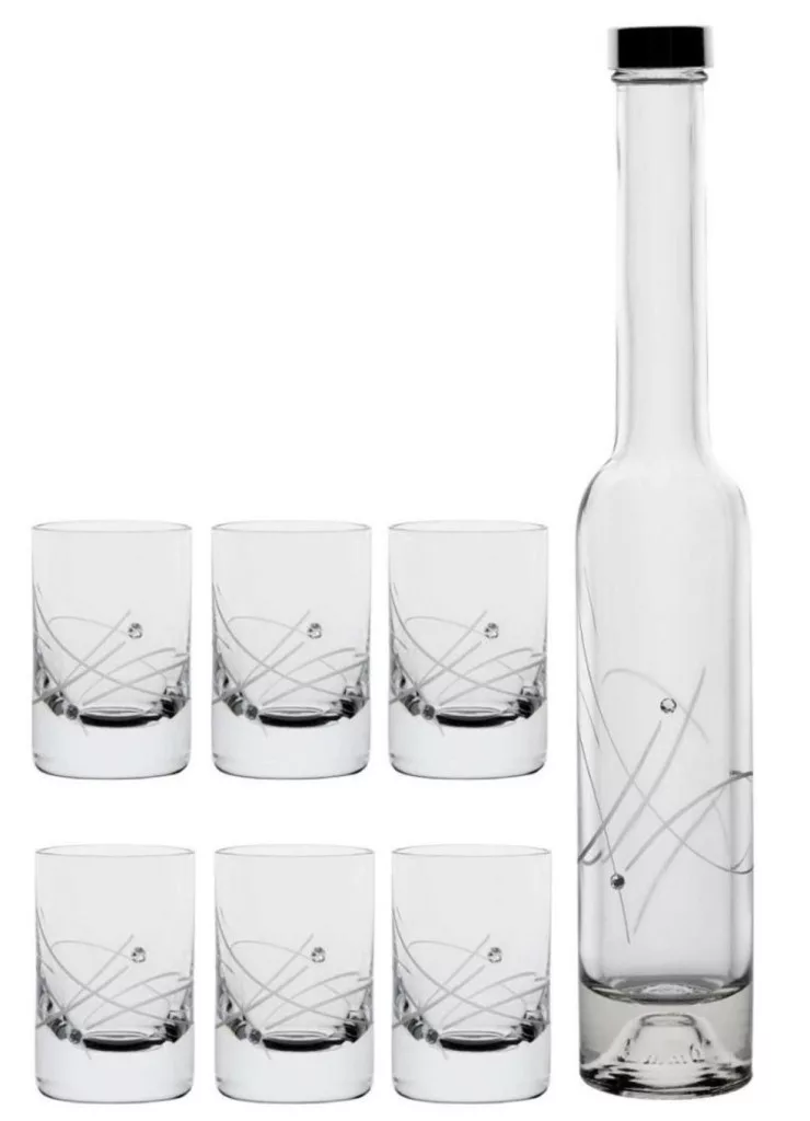RÖVIDITALOS SZETT 7DB-OS (6DB FELESPOHÁR + 1 DB PÁLINKÁS ÜVEG), KRISTÁLYBERAKÁSS