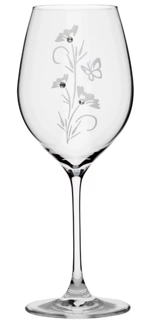 BOROSPOHÁR 2DB-OS KRISTÁLYBERAKÁSSAL DÍSZÍTETT, VIRÁG MINTÁS 470ML
