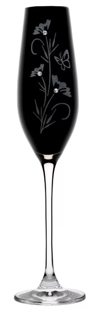 PEZSGŐSPOHÁR FEKETE 2DB-OS KRISTÁLYBERAKÁSSAL DÍSZÍTETT, VIRÁG MINTÁS 210ML