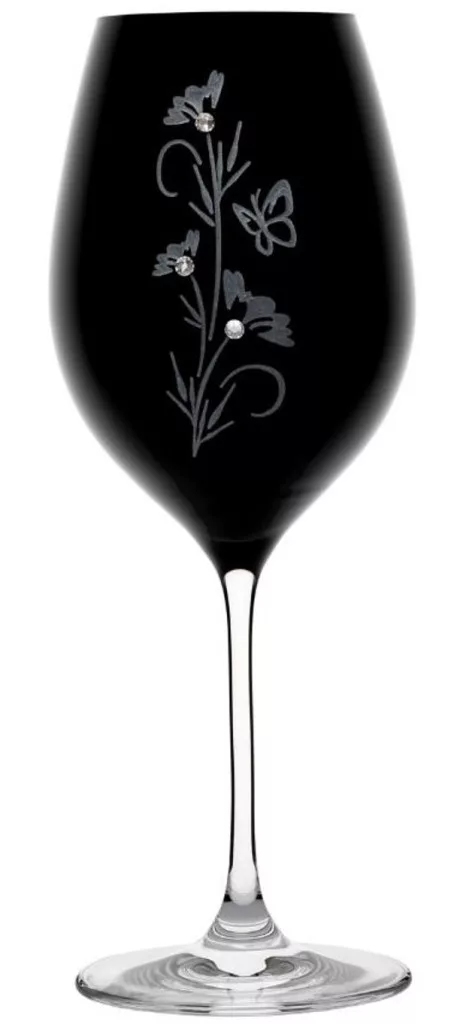 BOROSPOHÁR FEKETE 2DB-OS KRISTÁLYBERAKÁSSAL DÍSZÍTETT, VIRÁG MINTÁS 470ML