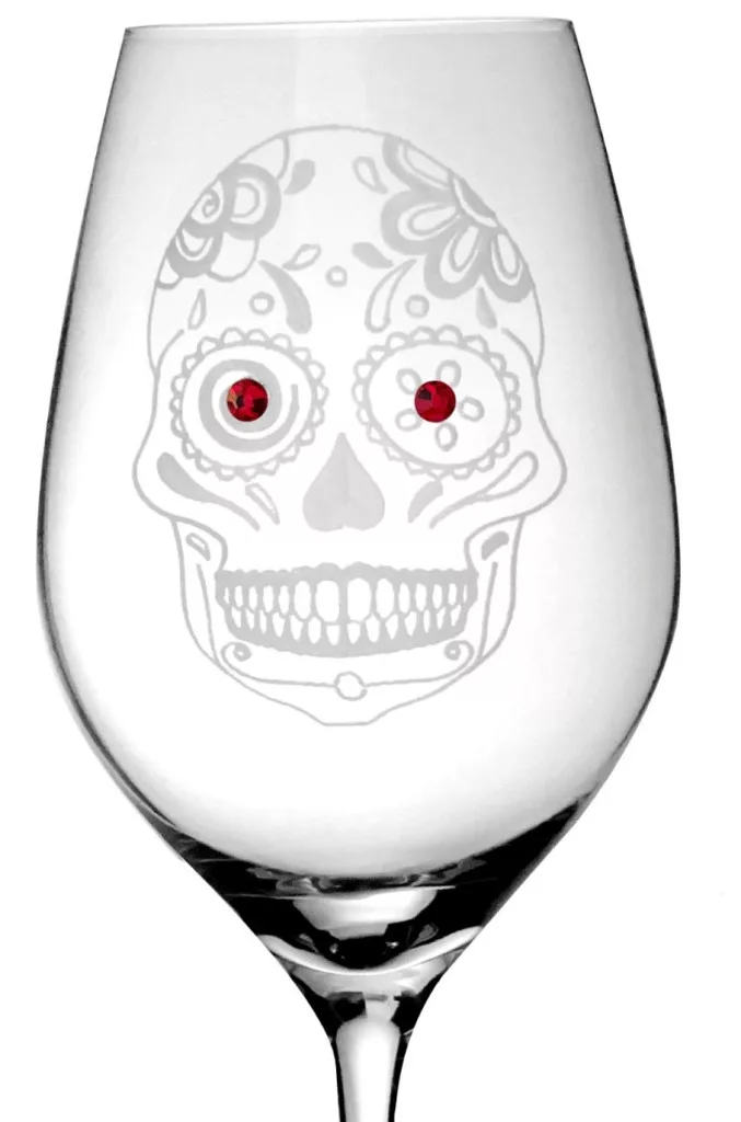 BOROSPOHÁR 2DB-OS KRISTÁLYBERAKÁSSAL DÍSZÍTETT, KOPONYA MINTÁS 360ML