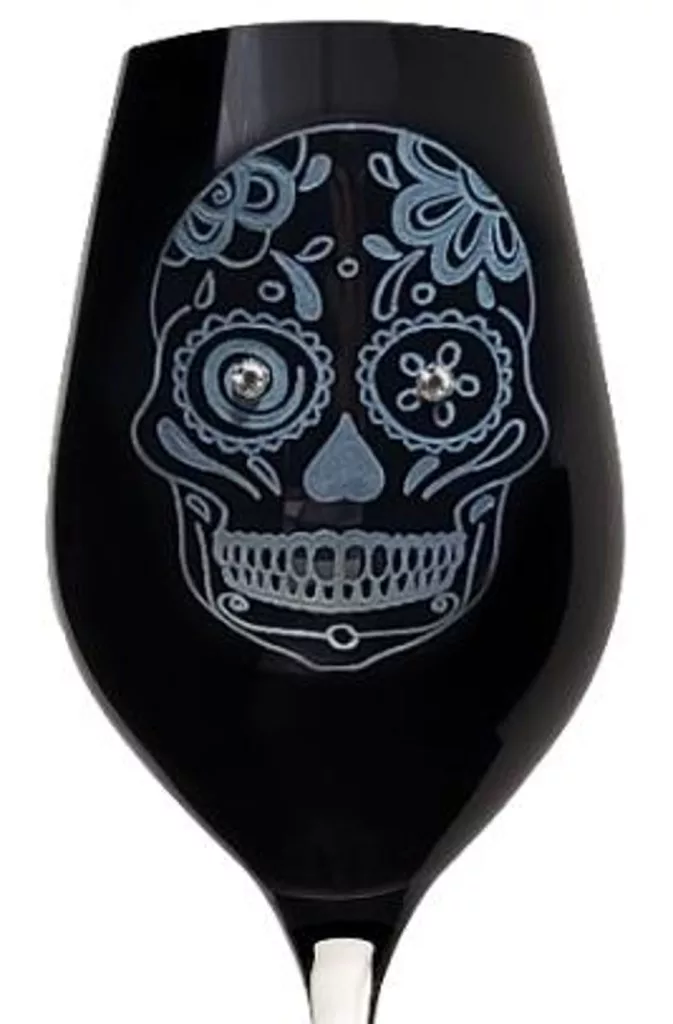 BOROSPOHÁR FEKETE 2DB-OS KRISTÁLYBERAKÁSSAL DÍSZÍTETT, KOPONYA MINTÁS 360ML