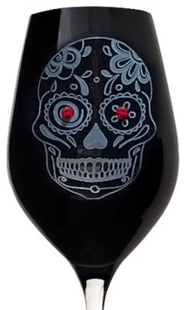 BOROSPOHÁR FEKETE 2DB-OS KRISTÁLYBERAKÁSSAL DÍSZÍTETT, KOPONYA MINTÁS 360ML