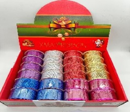 KARÁCSONYI SZALAG 3,8CM X 2,7M TÖBBFÉLE 24DB/DISPLAY