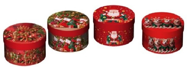 KARÁCSONYI AJÁNDÉKDOBOZ KEREK 10,8X5,2CM 4 FÉLE MINTA