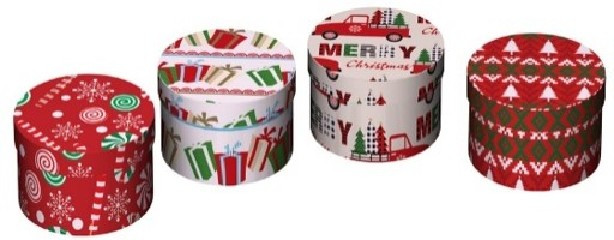 KARÁCSONYI AJÁNDÉKDOBOZ KEREK 10,8X5,2CM 4 FÉLE MINTA