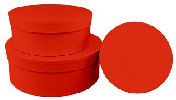 DÍSZDOBOZ SZETT 3R. KEREK , 21,5X7,8CM, 17,5X6,8CM 13,5X5,8CM PAPÍR, PIROS