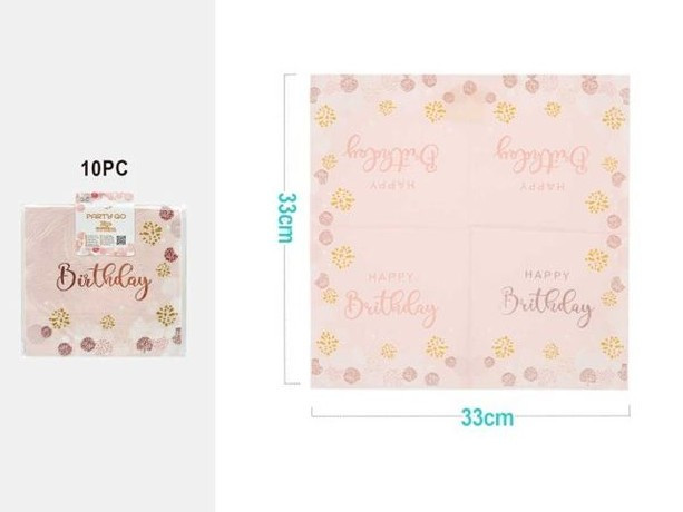 SZALVÉTA PAPÍR RÓZSASZÍN "HAPPY BIRTHDAY" 33CM 10DB-OS