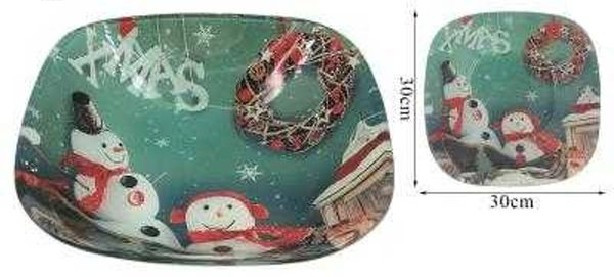 KÍNÁLÓ ÜVEG LEKEREKÍTETT NÉGYZET KARÁCSONYI 30X30CM